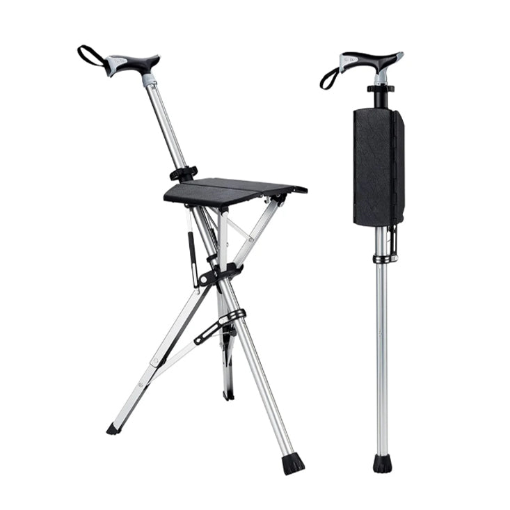 - This design, which instantly converts a cane into a chair, offers rest for tired legs and knees at a moment's notice.