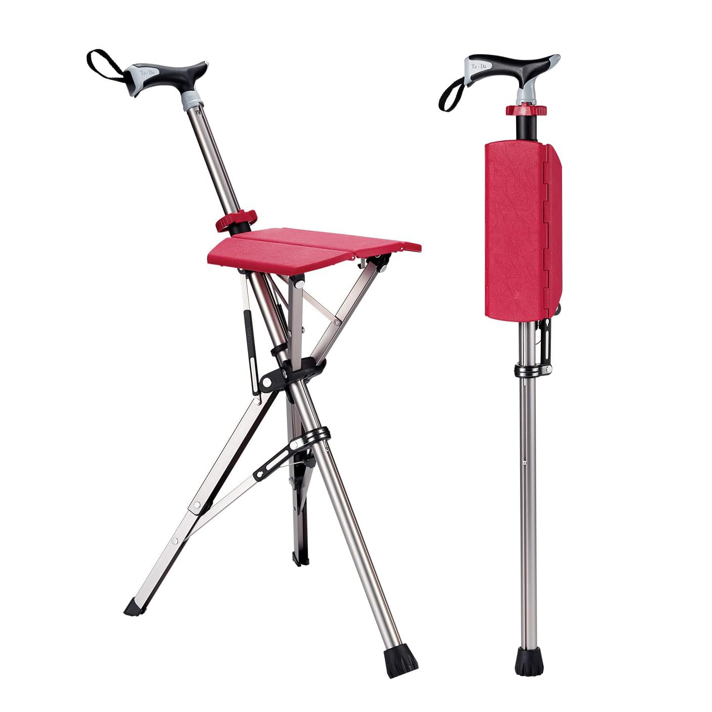 - Ta-Da® is a versatile mobility aid that simultaneously provides the user with a walking stick for support and a seat for resting.